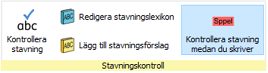 För att redigera ditt lexikon går du till fliken Symboler där du väljer ikonen Redigera stavningslexikon.