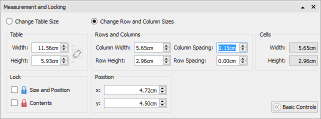 You can also create a table of identical cells. This is particularly useful for creating sticker sheets. Create and style a frame with the desired content. Select Create Table from Frame, then move your mouse until you see the desired number of cells. Then left click to confirm. |